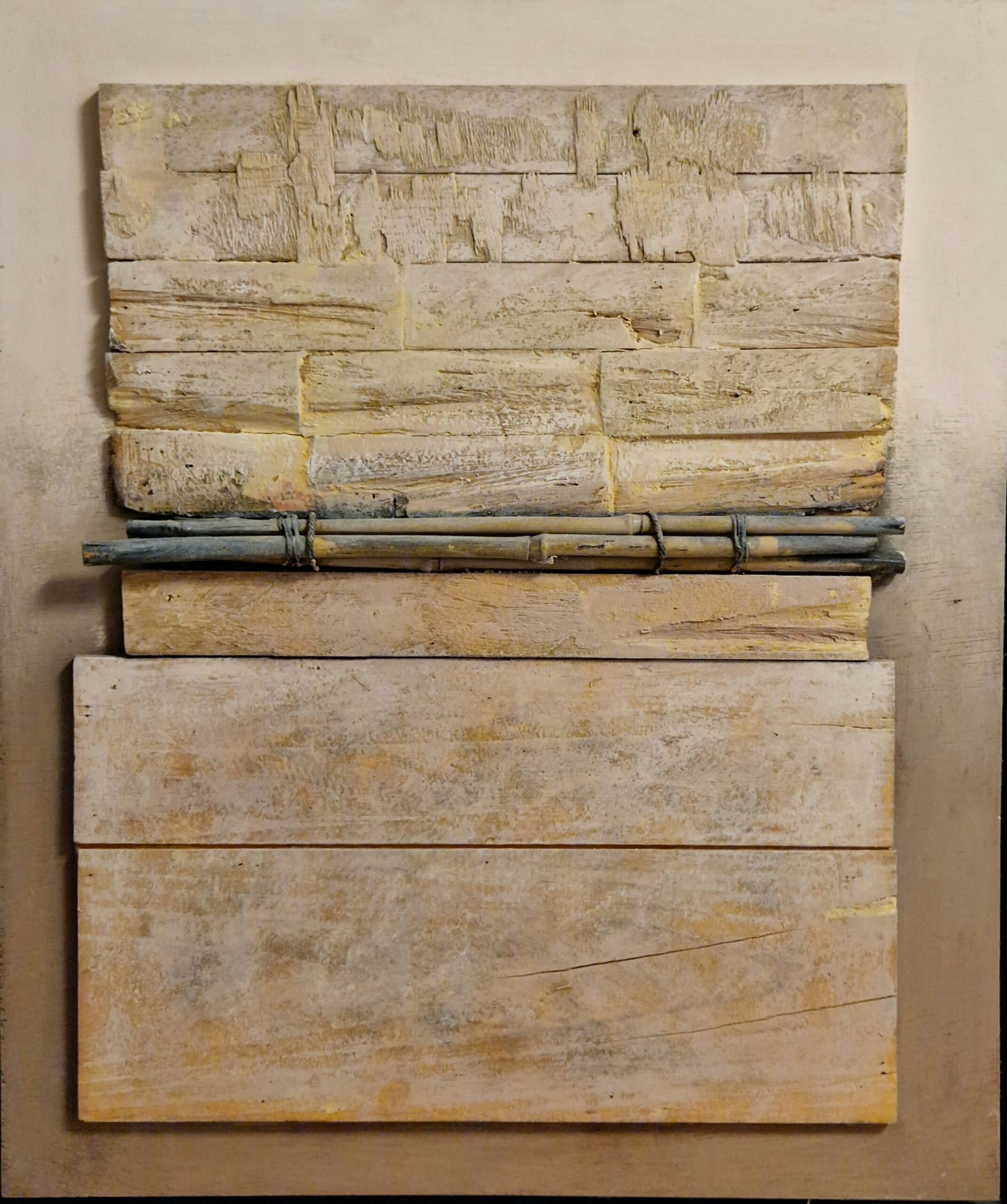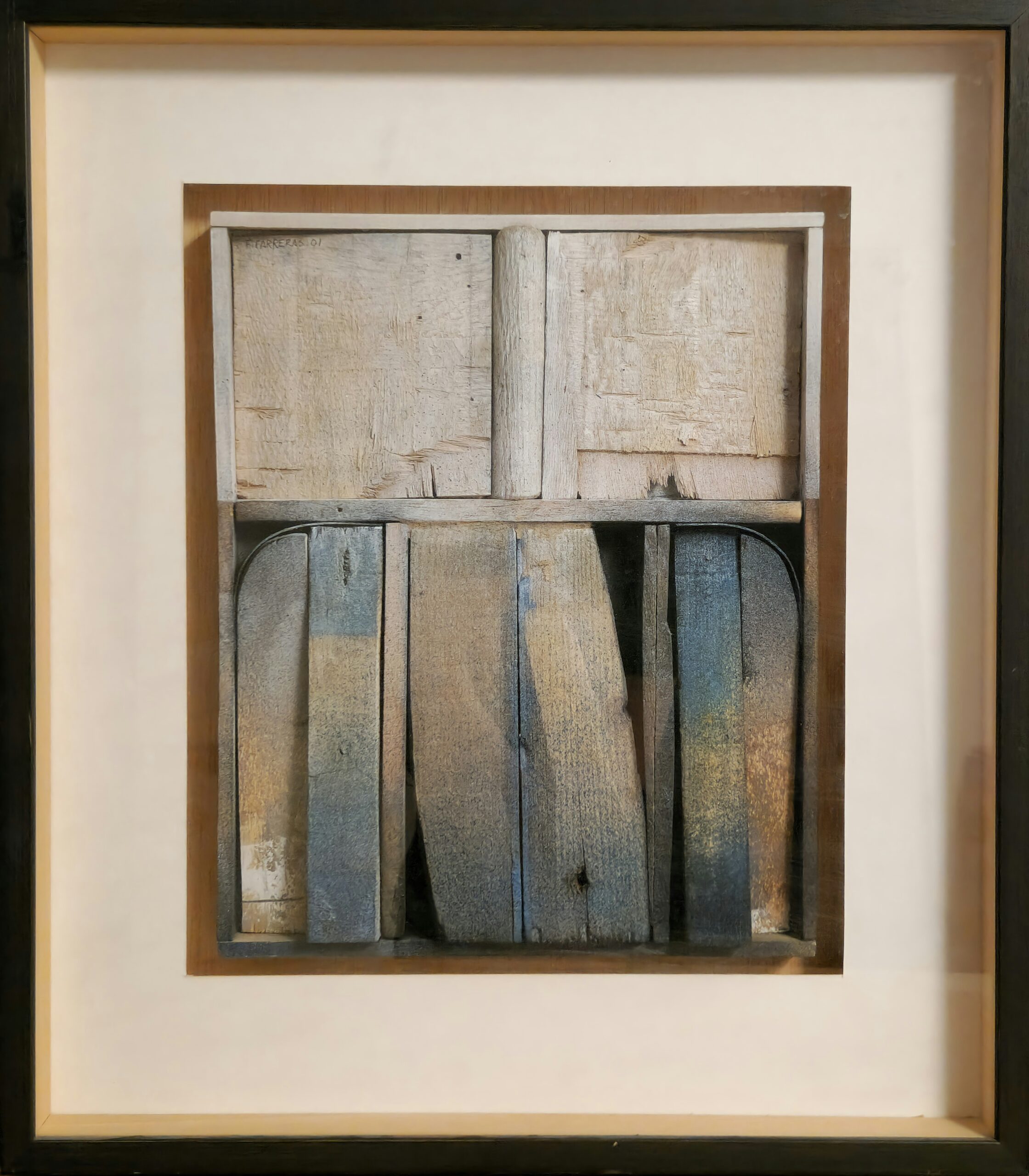 En 1951 y en 1953 viaja a Francia, donde tiene su primera aproximación a la abstracción geométrica. En la década de 1960 se concentra en la producción de sutiles collages con papel de seda, de clara inspiración oriental, mientras que en los ochenta prefirió la potencia expresiva de la madera que ensambla a una superficie.