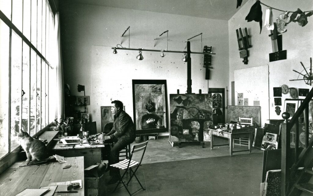 In 1941 he set up his first studio in Montparnasse. His affective stability and the birth of his son gave rise to a series of paintings of an intimate nature, some of them tending to abstraction. He soon made paintings of a marked expressionist and even Cubist character, in which he treated in a systematic and special way the technique of collage, from which the assemblages subsequently derived.